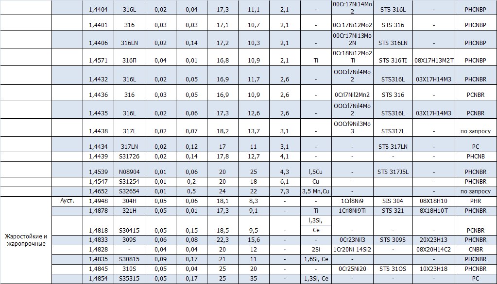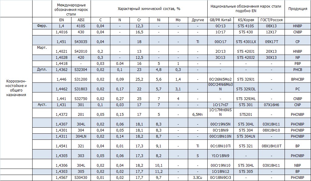 МАРКИ НЕРЖАВЕЮЩИХ СТАЛЕЙ